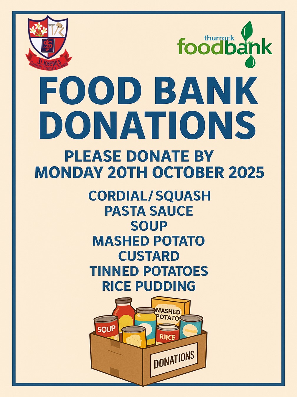 Below are the requested items from Thurrock Food Bank.