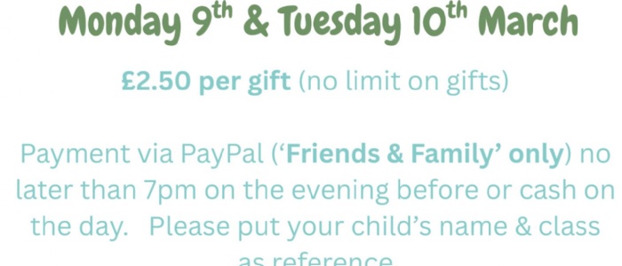 Children can purchase a gift at a price of £2.50 each for a female relative.